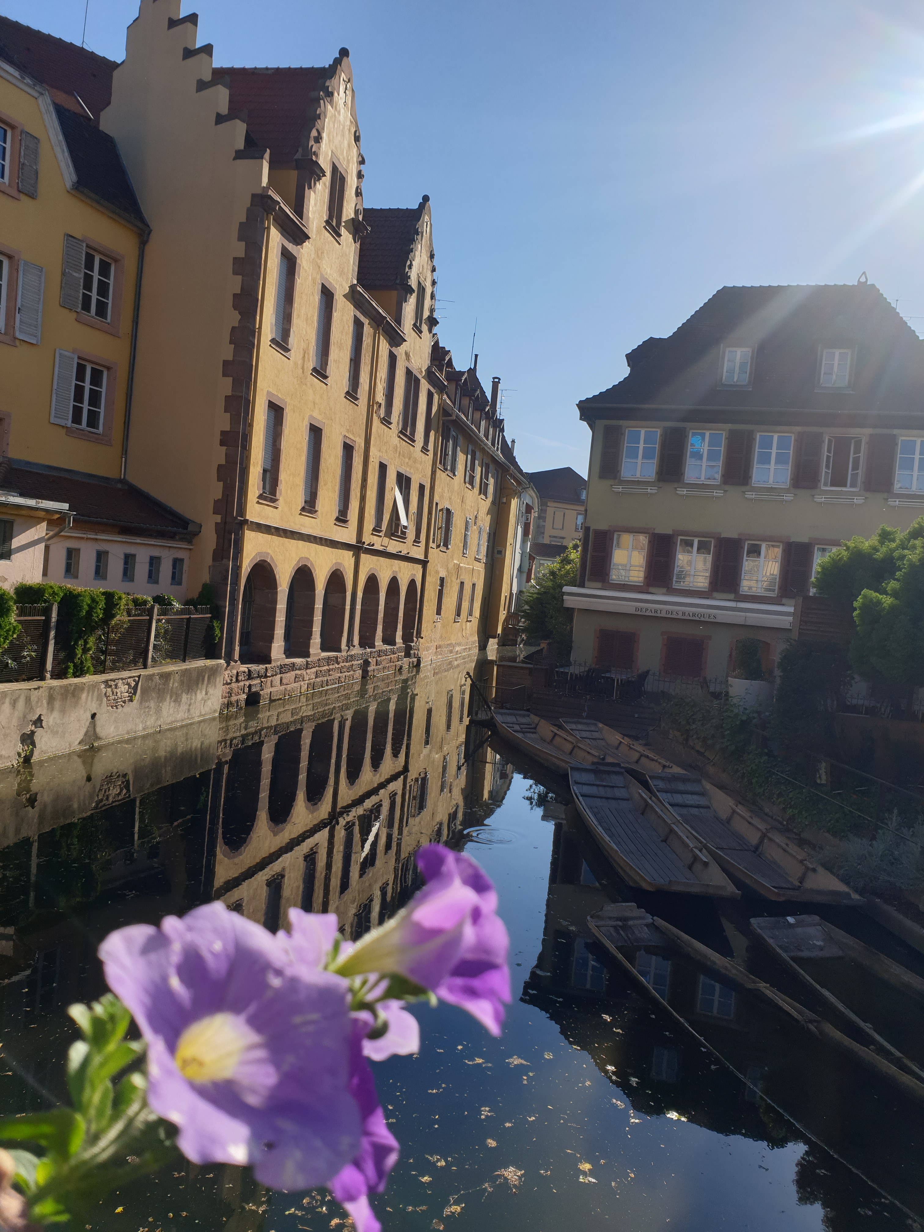Biletele au fost luate tot prin SNCF și au costat 20 de euro dus-întors pentru două persoane. Drumul până acolo nici nu-l simți și vei ajunge în mai puțin de o oră. La Colmar nu am avut avut mari așteptări deoarece am mai făcut greșeala să cred tot ceea ce vedeam prin poze și videouri și când ajungeam acolo să fie total diferit. Primă impresie la ieșirea din gară, totul era destul de modern, dar pe măsura ce te apropiai de centru, se vedeau căsuțele din povești colorate și uitate din trecut. Simțeam cum mi se umple sufletul de fericire cum mă apropiam de fiecare căsuță. Am ajuns acolo de dimineață, cred că undeva pe la 8 și bine am făcut deoarece erau foarte puțini turiști și am apucat să facem câteva poze și să admirăm totul fără gălăgie și aglomerație. Cred că până în ora 10 dimineața deja era plin Colmarul.